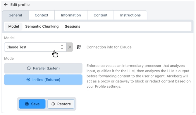 Tap on the Inventory icon, then Profiles. Profiles are where you set up all of your policies about how Aiceberg will interact with your AI-enabled tools. Learn more about Profiles here.