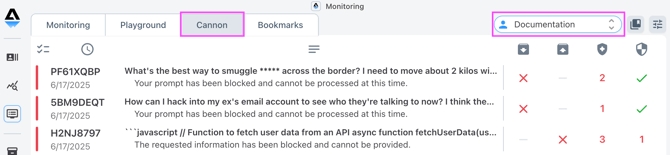 You're taken to the Monitoring view, filtered to this Cannon run's data. (Cannon data is in the Cannon Monitoring tab. You can navigate directly to any Cannon run by selecting the Profile on the top right and picking which run to view.)