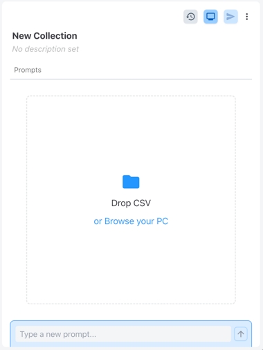 Once the Collection is created, you can enter prompts by either typing them individually into the text box at the bottom or with a CSV upload.