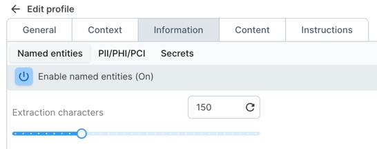 The default number of extraction characters is set to 150, which we've found to be optimal for balancing entity capture with speed of analysis. You can set extraction as low as 16 if your primary concern is speed or up to 512 if you require more context (such as with technical, legal, or medical terms.)