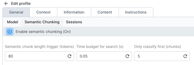 In this tab, chunk settings can be configured. The defaults are tuned to optimize for ensuring accurate analysis, thorough coverage of context, and high-volume traffic without performance degradation.