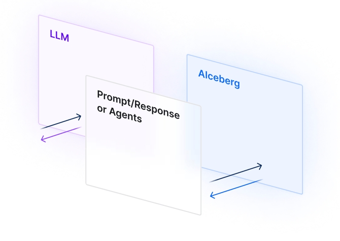 For the return trip from your LLM to your AI tool, content is routed through Aiceberg again, evaluated, and acted upon according to your Profile settings. Regardless of how Signals are configured in your Profile, the Signal evaluation results and log are visible in Monitoring.