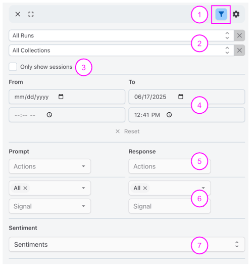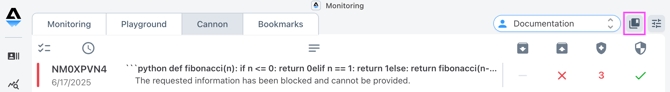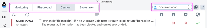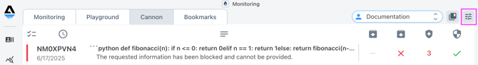 The Monitoring page is where you'll see incoming prompts, responses, signal results, and other information. To navigate there, tap the Monitoring icon on the left.