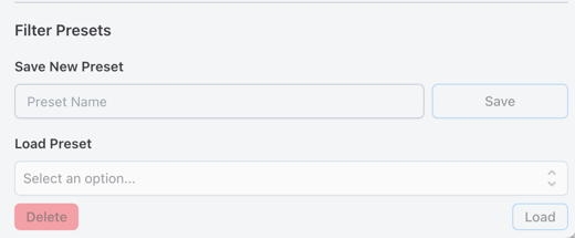 Your browser will remember your choices and show you the last Monitoring view you set up. If you'd like to save a preset, scroll to the bottom of this filter view to name your current set of filters. Any named filter sets will be available as a preset in this menu.