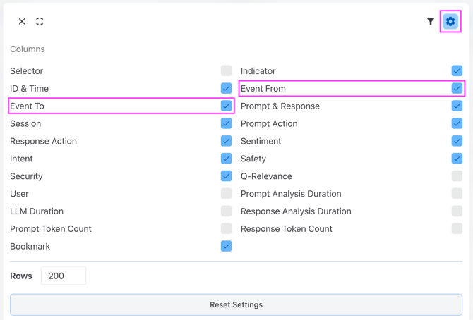 Single events can be seen in context by enabling the Sessions view in Monitoring. For complex agentic systems, event monitoring provides: