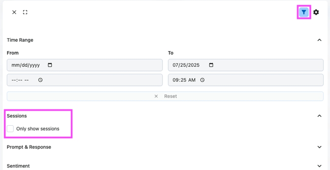 Sessions are continuous interaction sequences between a user and an AI model or agent. Sessions encompass: