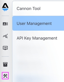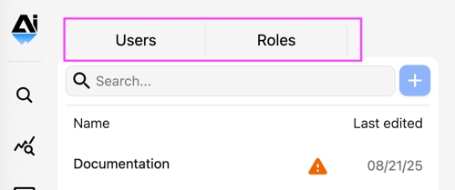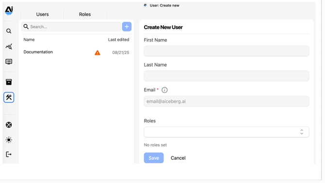 This page shows all users added to the account, displaying first and last names, email, and created date.